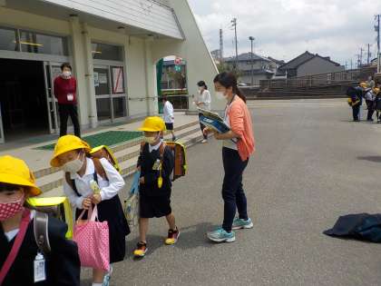 校長室から校長先生が笑顔で手を振ってくださいました。1年生は、安全に気をつけて下校していきました。見守り隊のみなさんも、安全を見守ってくださり、温かく声をかけてくださいました。ありがとうございます。