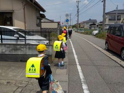 今日は、午前中だけの登校日でした。1年生は、方面別に集団下校しました。職員がついて行きました。