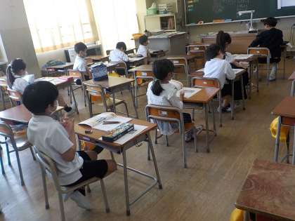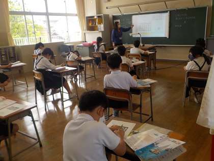 2年生の算数の授業です。2つのグループに分かれて授業を行っています。