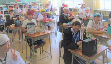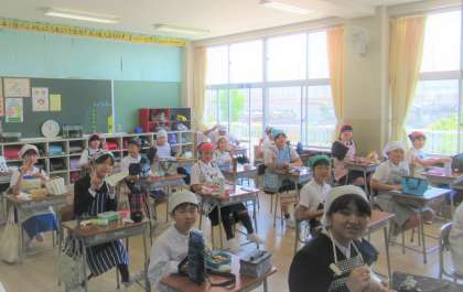 コロナ対策のため、前を向いて、しゃべらずの弁当タイムでしたが、子供たちの表情は幸せそう。弁当と一緒に、おうちの方の愛情もかみしめる子供たちでした。