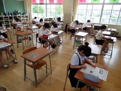今日は今年度初めて算数のテストをしました。課題に一生懸命取り組んだり、復習で確認したりした内容に、みんなが集中していました。