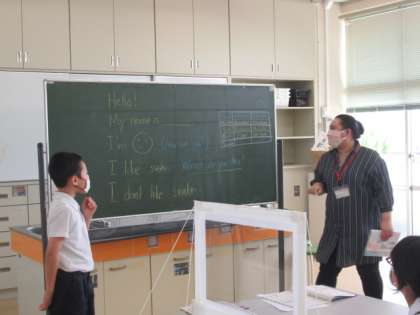 今日は分散で、ALTの先生とともに外国語活動をしました。自分の好きな物や苦手な物を英語で紹介できるように練習しています。