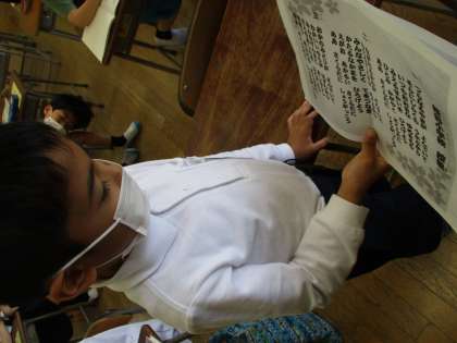 今日の2時間目に、歌詞カードを見ながら、入学式以来の校歌を聴きました。「明るくて楽しい感じがするね」「素敵な歌だな」という声が聞かれ、「見ないで歌ってみよう」とチャレンジする姿も見られました。校歌も児童歌も早く覚えて、みんなで歌える日が来るといいですね。