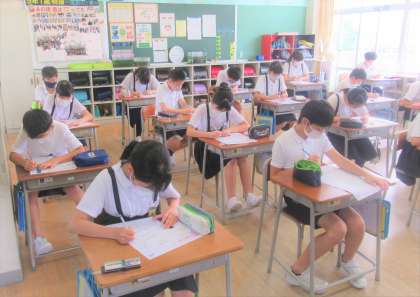集中 6年生 公開日 2020/06/02 更新日 2020/06/02 6年生のページ 算数科では、単元の確認テストを行いました。 集中した雰囲気の中で、鉛筆の音が心地よく響いていました。 さすが6年生です。