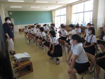 図書室オリエンテーションをしました。新しい図書室のきまりや、本のラベル等の説明を司書の先生からお話を聞きました。クイズもしながら、楽しんで「図書室の名探偵」を目指しました。