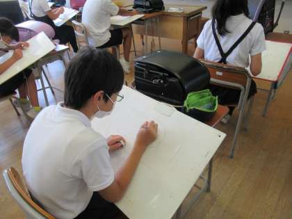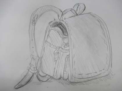 ランドセルとにらめっこしながら真剣に描く姿がかっこいいです。