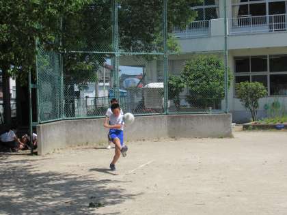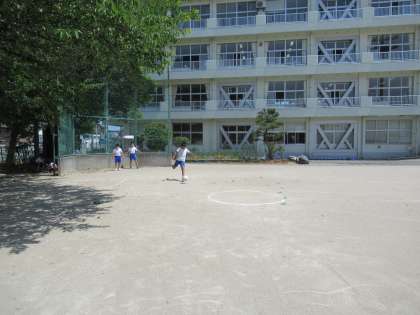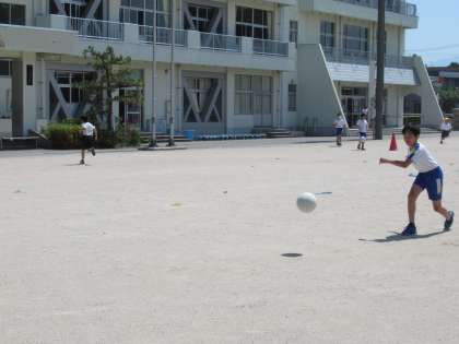 休み時間、接触が起こらないキックベースを楽しむ子供たち。