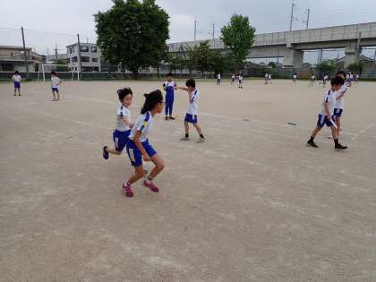 今日はあいにくの天気でしたが、リレーの練習を始めました。まだまだ後ろを確認し、手を出しながら走る子がほとんどです。少しずつステップアップしていきたいですね。