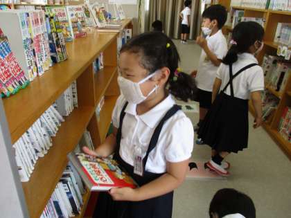 今日は、図書館オリエンテーションがありました。学校司書の先生のお話をよく聞き、図書室の本を借りる上での約束とマナーを守って、実際に好きな本を借りました。