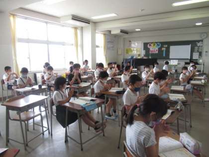 音楽の学習では、「クラッピングファンタジー」で手拍子でのリズムを楽しみました。クラスの友達と息を合わせてたたくのは、難しい様子でしたが、盛り上がりました♪