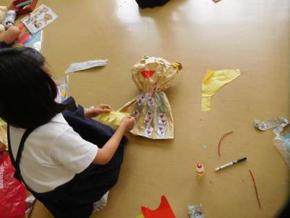 しばったり、飾りをつけながら自分のつくりたい「友だち」を