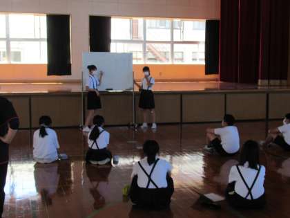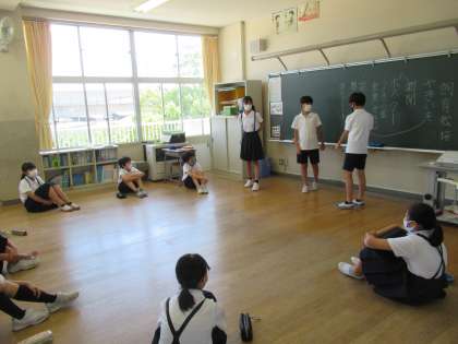 委員会活動の様子です。 3密を避けながら話合いをしています。