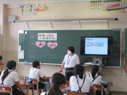 道徳の授業では、教頭先生から情報モラルの大切さについて教えていただきました。