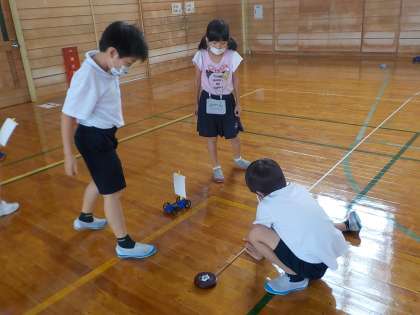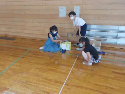 今日は、「風の強さによって車の動き方はかわるだろうか」という課題を解決しようと、実験を行いました。グループで役割分担を行い、密にならないようにと、体育館で行いました。次回は、実験結果をもとに話し合う予定です。