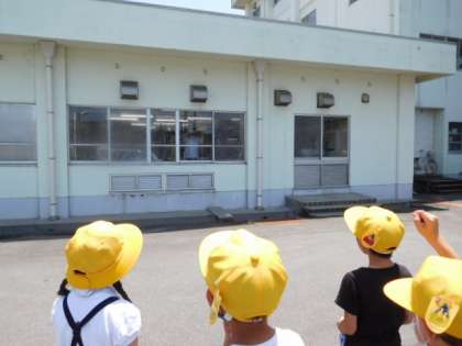 また、外から給食室の様子が見えました。調理員さんが、大きな大きなしゃもじを見せてくださり、子供たちから拍手が起こりました。「大きい!すごい!あんなに大きいの初めて見た!」と興奮していた様子でした。子供たちは、調理員さんに「毎日、おいしい給食ありがとうございます」と窓越しに手を振っていました。