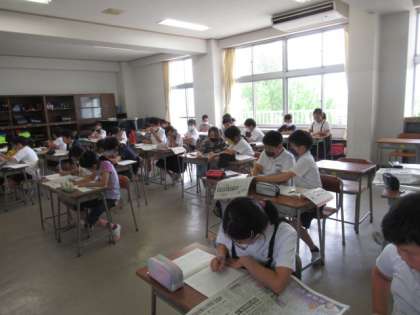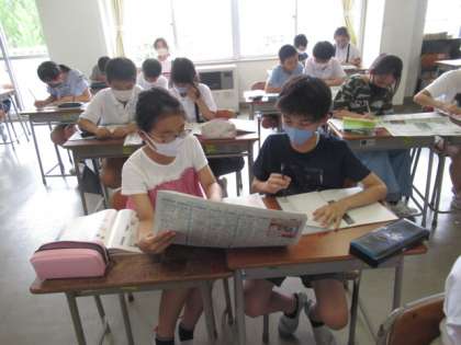 国語の学習では、「4−1新聞社」の新米新聞記者のみんなが、新聞を作ります!今日は新聞記者への道、第1弾で新聞の工夫を探りました。実際に新聞を見てみると、読み手の立場に立った、様々な工夫を見付けることができました。