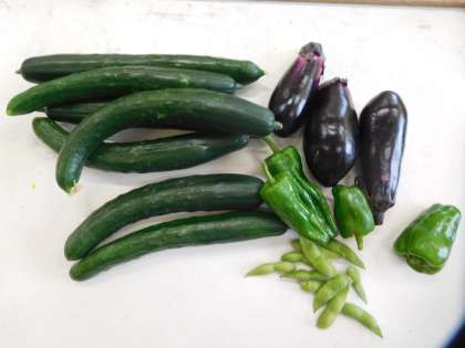 今日は、休み時間に子供たちと野菜を取りに行きました。