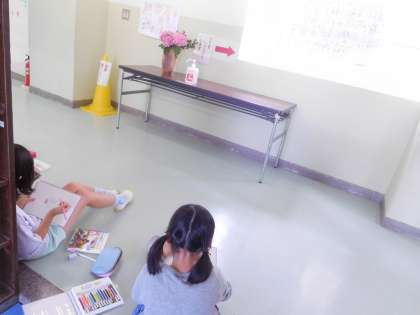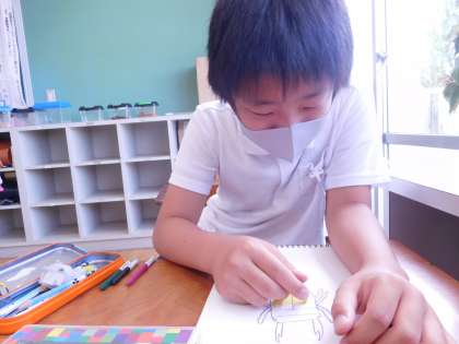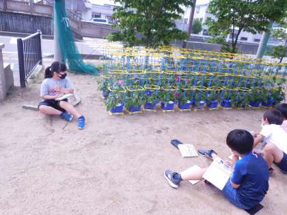 アジサイの花やクワガタムシなど、自分が6月と感じるものを校内から見付けて、思い思いに絵に表しています。