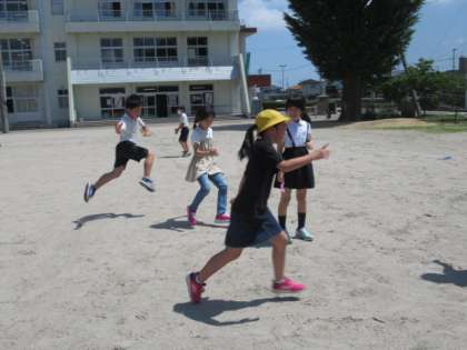 シューイチ係のみんなが、週に1回クラスのみんなで楽しめるゲームを企画してくれます。今日は、かげふみおにをしました。なかよく楽しむことができました。