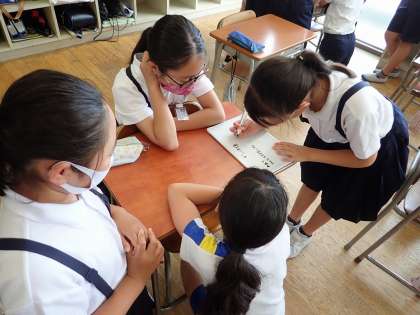 学級目標に向かって、自分たちがどんなことができるかを考え、それぞれの係を決めました。定期的に活動を自主的に続けてほしいと思います。