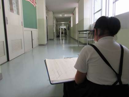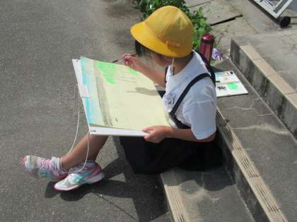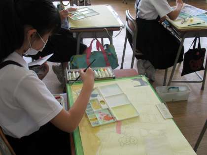 表したい感じになるように、水彩の塗り方を工夫する姿が見られます。