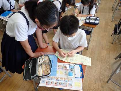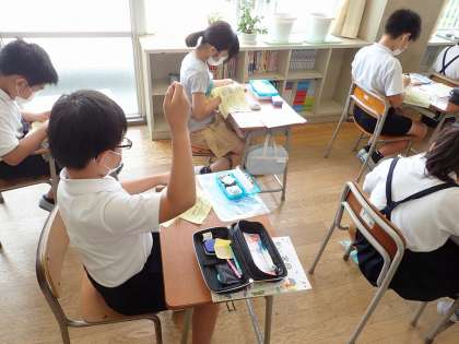 玉結びと玉留めの難関をくぐり抜け、いよいよ縫い始めました。縫い方をしっかりと身につけ、いろいろなものに応用していってほしいと思います。