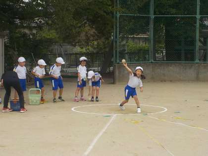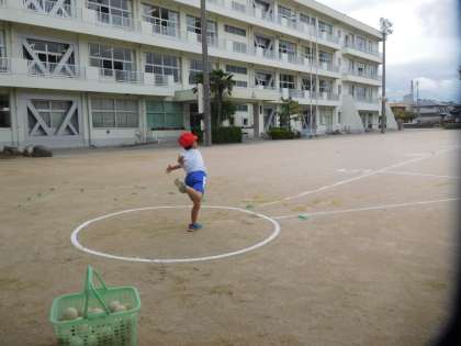 シャドウピッチングや新聞鉄砲のときに教わった投げ方を意識しながら、遠くに思いっきり投げることができました。