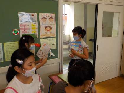 外国語活動では、英語の挨拶に始まり、友達とコミュニケーションを取りながら学習しました。
