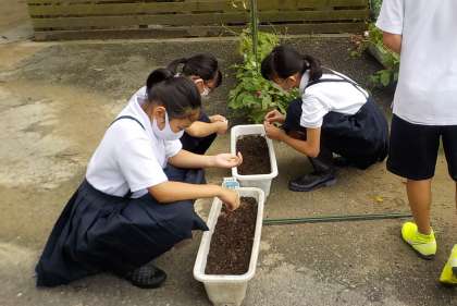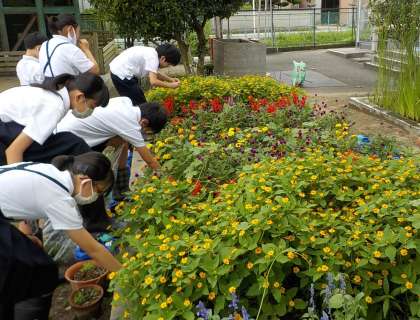 今日の委員会活動では、花壇に咲いている花の紹介ポスター作りや、花壇の草むしり、かすみ草を植える活動を行いました。自分の担当の活動に、真剣に取り組んでいました。また、今年は「あさがおのトンネル」づくりに挑戦しています。つるがどんどん伸びていくといいですね。