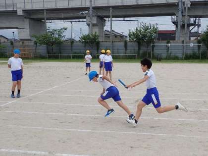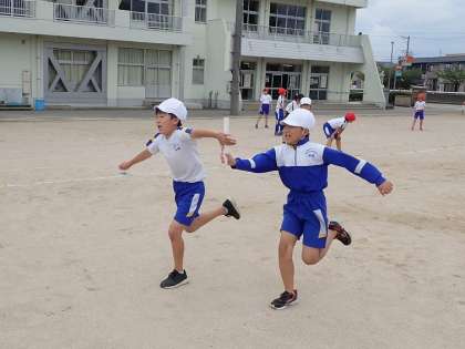 今日は、リレーの学習の最後ということで、今までの練習を踏まえてタイムの計測を行いました。どの団も初めとは見違えるほど上手にバトンの受け渡しを行い、練習の成果が見て取れました。