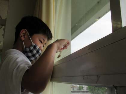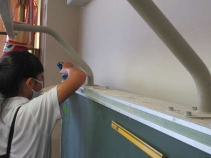汚れの種類に合わせて掃除の仕方を工夫する姿が見られます。