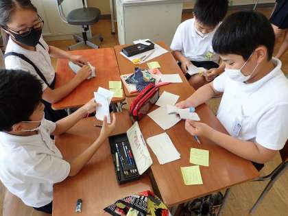 パラパラ漫画を友達と見合いました。友達の作品にどんどんコメントを書いて渡していました。