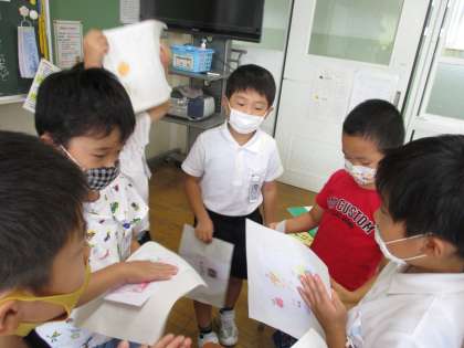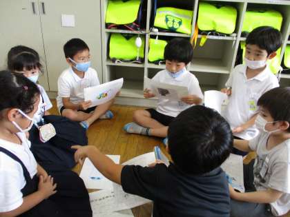 先日、自分の好きなものについてグループの友達に発表しました。絵を見せながら、「○○がすきです。どうしてかというと〜だからです。」と、好きな理由もつけて発表しました。