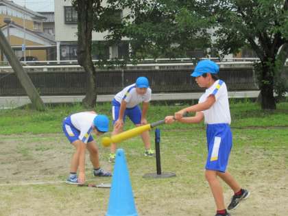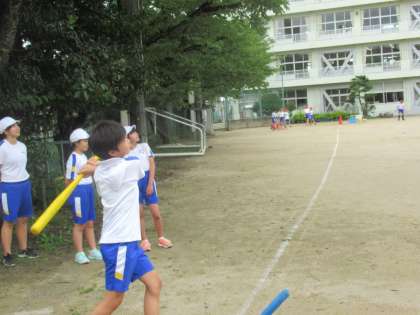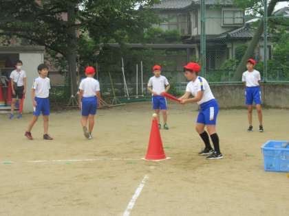 体育科では、ベースボール型ゲームに取り組んでいます。