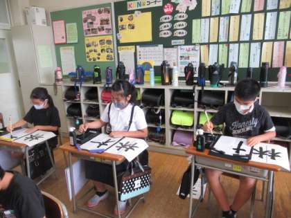 心を落ち着かせて書写をしています。「林」の字を清書しました。長さや線の向き等、一画ずつ確認して書くことができました。片付けも上手に、最後の掃除までしっかりできた子供たちです!