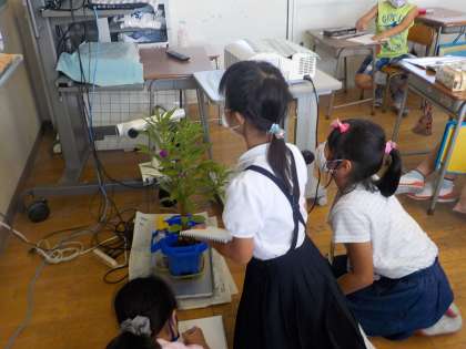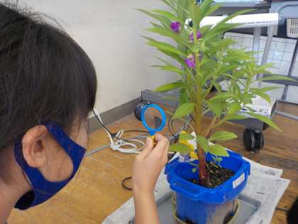 つぼみができているものや花が咲いているものがあり、密を避けて交代しながら観察をしました。