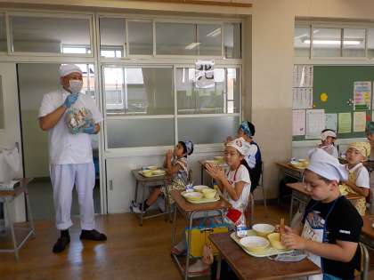 子供たちが心配していたら、「今日はメニューにシューアイスがあります。食べ終わる頃を見計らって、教室に届けます。」という放送が入りました。