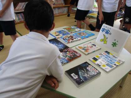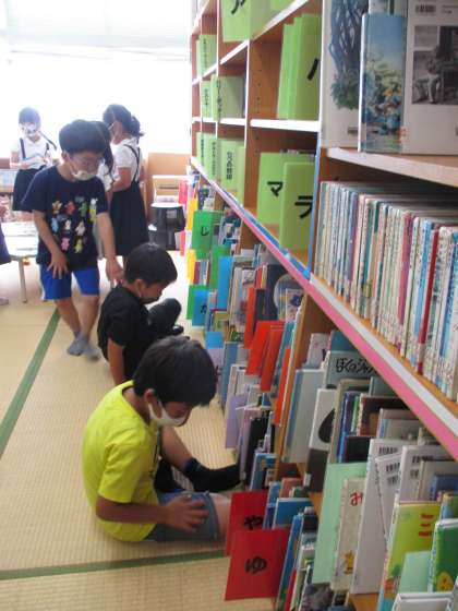 今日は、図書室で夏休みの本を借りました。これまでの本は、家に持ち帰ることはできませんでしたが、今回は家に持ち帰ることができます。司書の先生のおすすめの本をお聞きして、どんな本を借りようか真剣に選んでいました。