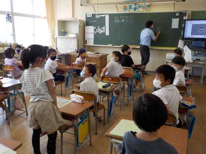 今日は、1学期最後の外国語活動でした。自分の好きな色を発表し、3年1組の好きな色ランキングをつくりました。