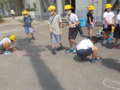 外に出る時間は短かったのですが、昼に見たかげが午後には長く伸びているなど、かげの位置も長さも予想外だったので、子供たちは大変驚いていました。