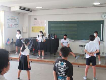 水を得た魚のように仲間と話し合い、応援合戦の演技を築き上げていく子供たち。