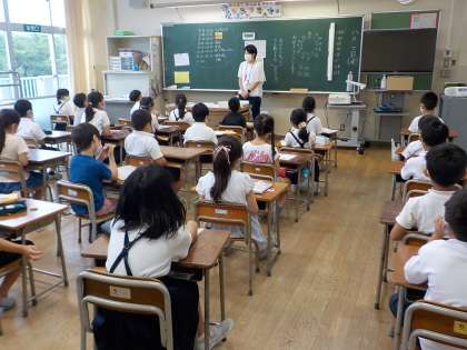 今回は、校長先生のお話を各教室で聞きました。