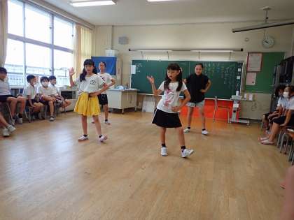 ドッジボールの後、ダンス係からダンスの発表がありました。練習してきた分、息の合った発表だったと思います。よくがんばりました。