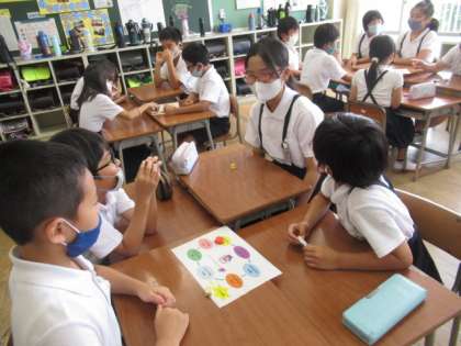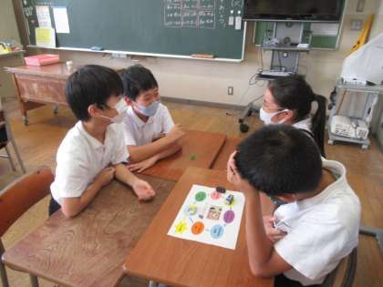 サイコロトーーク!で、班の友達と自分の出来事をスピーチし合いました。久しぶりに友達と話すことができ、嬉しそうです。