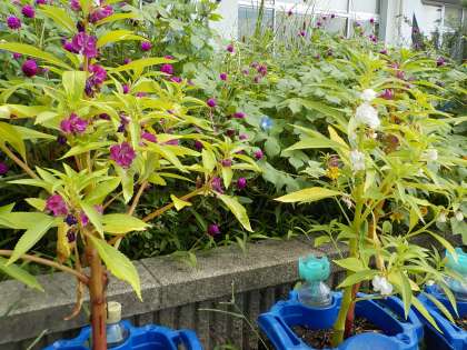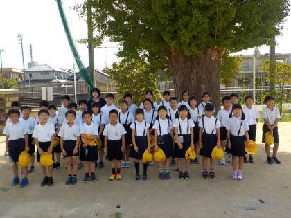18日、2学期初日。3年生は、全員揃ってスタートを切りました。暑い日が続いていますが、3年生が育てているホウセンカは、着実に成長し、花や実を付けています。今日は水やりと観察を行い、全員で2学期スタートの記念写真を撮影しました。
