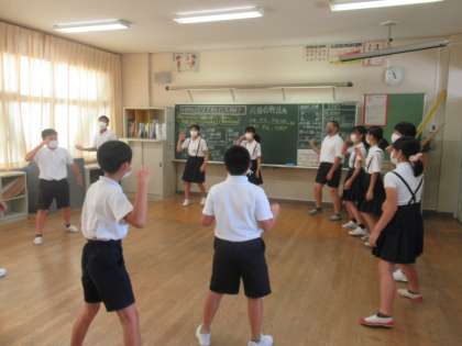 少し時間が余ったので、「キセキのハピスマオリンピック」に向けて団活動を行いました。団活動の時間は、10分ほどでしたが、時間を惜しむように話合いやダンス練習に取り組む子供たちでした。