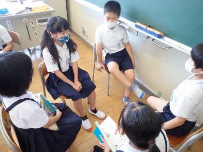 猫と犬のどちらがよいか、飼うのを迷っている人に勧める場面を想定して、対話の練習をしました。みんな一生懸命自分がよいと思う理由を話していました。