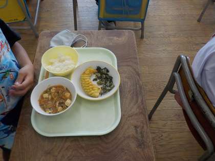 今日から、2学期の給食が始まりました。衛生面にも注意して準備しています。