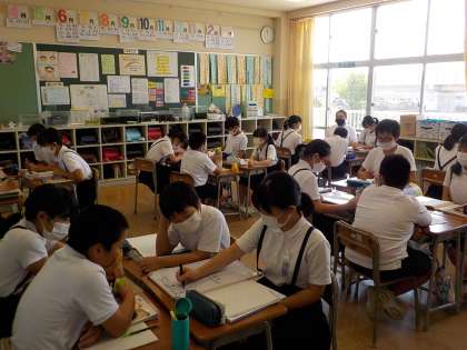 今日の理科の時間、太陽と月の共通点と相違点について、まず自分で考え、グループで話し合った後、全体の場でシェアする学習を行いました。6年生は、この形式の学習にも慣れてきたようで、どのグループからも楽しそうな声か聞こえてきました。面白い考えも出されました。