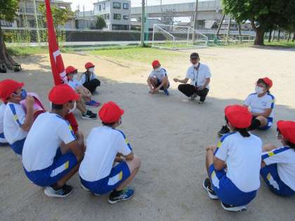 結団式後、子供たちは次の応援練習に向けて、真剣に話合いをしていました。